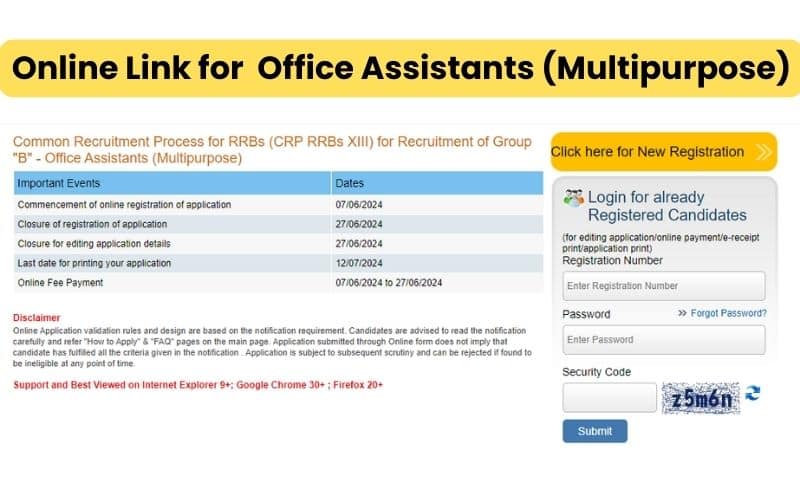 | IBPS RRB Apply Online Link for Office Assistants (Multipurpose) | Click Here to Apply |